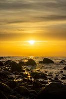 Panoramische zonsondergang op het strand met rotsen aan de Oostzee, eiland Rügen in Duitsland Cap Arkona Behangontwerp