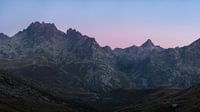 Panorama van meerdere beelden tijdens het blauwe uur in de Franse Alpen in het gebied Savoie.