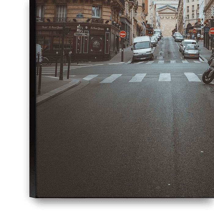 Dit is het Panthéon in Parijs omringd door bebouwing in Parijse stijl. Op het moment van opname was het rustig op straat, waardoor de foto kalmte uitstraalt.