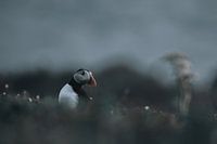 De Papagaaiduiker, de clown van de oceaan, op het eiland Skokholm aan de westkust van Wales. Het was na zonsondergang toen ik deze fotografeerde, wat een donker sfeer brengt.
