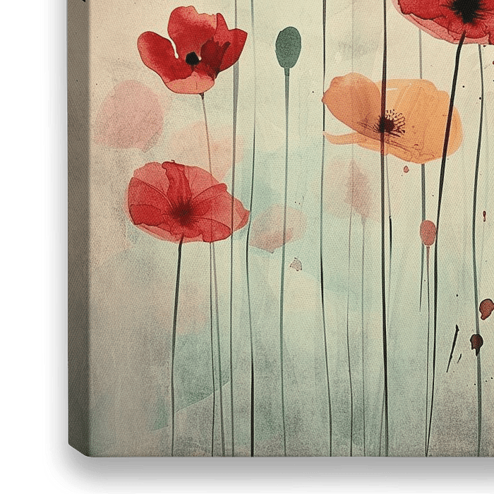 Luchtige aquarel-papavers zweven als dansende penseelstreken in zachte tinten rood, oranje en roze. De transparante lagen en subtiele spatten geven dit werk een dromerig, natuurlijk karakter. Papaver Dreams brengt lichtheid, warmte en een vleugje poëzie in elke ruimte.