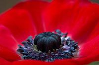 Detail van de papaver. Het hart van de bloem is scherp.