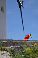 Over ‘Papaver met windmolen La Mancha’ van Iris Heuer