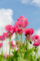 Een veld papaverbloemen met een mooie roze kleur, in het Zeeuwse 's-Heer Arendskerke in Nederland. Gekweekt voor het Blauwmaanzaad dat op brood zit.
