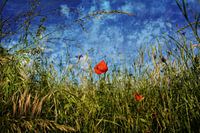 Poppy - Rode klaproos in een veld met een blauwe lucht en structuur