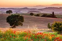 Val d'Orcia is zeer in trek vanwege zijn heuvelachtige karakter en rijdende vanaf het stadje Pienze richting San Quirico d'Orcia kom je langs deze mooie plek met papavers.