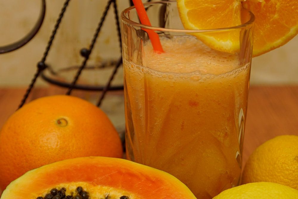 Papaya cocktail met rum, citroen en sinaasappel. Kleurrijke cocktails in glazen
