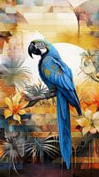 Dit intrigerende collage schilderij, geïnspireerd door het dadaïsme, weeft een surreëel verhaal in de weelderige jungle. In het middelpunt van dit eclectische kunstwerk prijkt een fraaie blauwe Ara, dat opdoemt te midden van fragiele lelies en weelderige palmbladeren. De dynamiek van het dadaïstische experiment komt tot uiting in de samensmelting van onverwachte elementen, waarbij de Ara fungeert als een symbolische brug tussen de natuur en het abstracte.