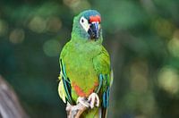 De foto van deze papegaai is genomen in het vogelpark Parque das Aves in Brazilië op 28 juli 2017.