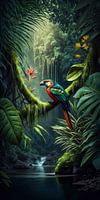Een prachtig staand portret van deze papegaai boven een stroompje diep in de jungle van Zuid Amerika