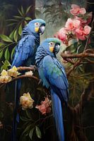 Deze papegaaien heb ik geschilderd omdat ik zin had in kleur, contrast en speelsheid. Hun houding is trots, bijna alsof ze zelf weten dat ze opvallen.