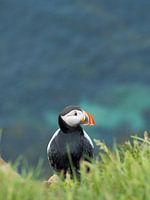 Puffin in Látrabjarg, een van de mooiste natuurgebieden van IJsland, de thuisbasis van de grootste zeevogelkolonie in de noordelijke Atlantische Oceaan en het meest westelijke punt van Europa. De klif is het leefgebied van miljoenen zeevogels, waaronder de schattige papegaaiduikers (puffins).
