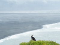 Puffin op Kaap Ingolfshofdi, een afgelegen landtong aan de kust halverwege tussen Skaftafell in Vatnajokull National Park en de ijslagune van Jökulsárlón. Dit natuurgebied herbergt duizenden nestelende zeevogels, zoals papegaaiduikers (puffins) en grote jagers. De kaap is vernoemd naar de eerste kolonist van IJsland, Ingolfur Arnarson, die daar zijn eerste winter in IJsland doorbracht in het jaar 874 na Christus.