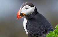 Papegaaiduiker uit IJsland met een mooie grijze achtergrond.