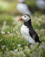 Ee prachtige papegaaiduiker op de Farne Islands in de UK. Hier komen jaarlijks duizenden vogels samen om te broeden en vis te vangen.