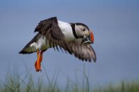 Foto's van papegaaiduikers, fratercula arctica, gemaakt in Engeland.