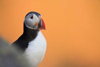Papegaaiduikers in het laatste avondlicht Noorwegen