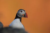 Papegaaiduikers in het laatste avondlicht Noorwegen