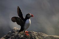Papegaaiduikers in het laatste avondlicht Noorwegen van Frank Fichtmüller