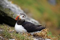 Papegaaiduikers op het eiland Skellig Michael in Ierland