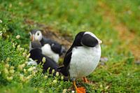 Papegaaiduikers op het eiland Skellig Michael in Ierland