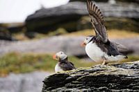 Papegaaiduikers op het eiland Skellig Michael in Ierland