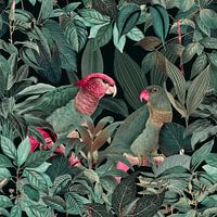Exotische papegaaien in de tropische jungle met weelderige groene bladeren