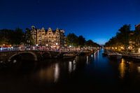 Deze foto is genomen in het zogenaamde bluawe uurtje en beeld Papeneiland af in Amsterdam. Je vind daar ook cafe Papeneiland op de hoek van de Brouwersgracht en de Prinsengracht.
