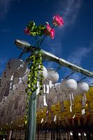 De papieren lantaarns in de Bulguksa tempel in Zuid-Korea zijn fel beschilderd, voorzien van inscripties en verkrijgbaar in verschillende kleuren.