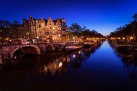 De kruising bij de Papiermolensluis tijdens het blauwe uur. De prachtige diep blauwe kleur reflecteerd in het water bij dit stukje historisch Amsterdam.