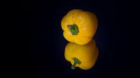Gele paprika met zwarte achtergrond op spiegel