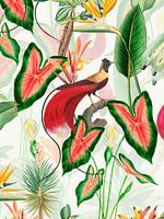 Het ontwerp van Uta Naumann bestaat uit een betoverend tafereel met een handgeschilderde rode tropische paradijsvogel als middelpunt. Tegen een strakke witte achtergrond wordt deze opvallende vogel elegant omlijst door weelderige tropische bladeren, wuivende palmen en levendige exotische bloemen. Het ontwerp weerspiegelt de essentie van een weelderig en levendig tropisch paradijs en vult de kamer met een uitbarsting van kleur en natuurlijke schoonheid. Dit prachtige stuk past perfect in een goed verlichte woonkamer of serre. Het voegt een vleugje exotische elegantie en artistieke charme toe aan de kamer en is tegelijkertijd een visueel boeiende blikvanger die gevoelens van ontspanning en bewondering voor de wonderen van de natuur oproept.