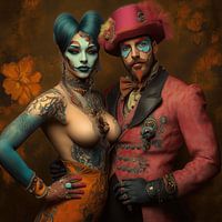 Deze kunstwerken zijn een feest voor de zintuigen, een levendige en uitbundige viering van excentriek en stijlvol leven. Deze portretten van excentrieke stellen, gekleed in de meest luxueuze stoffen, zijn geen gewone representaties van mode of identiteit. Ze zijn een visueel spektakel waar elke hoek, elk detail, en elke kleurkeuze een…
