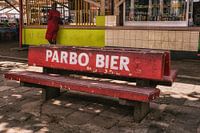 Bankje in Paramaribo, Suriname met Parbo bier reclame