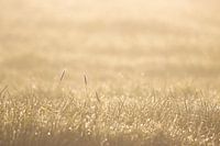 De koude nacht heeft duizenden dauwdruppeltjes achtergelaten in de weiden van Midden-Delfland. Het vroege zonlicht laat ze schitteren als parels.