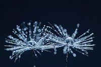 In de stilte van de natuur schuilt een wonder: de zaadjes van de paardenbloem, gehuld in een ragfijn netwerk van haartjes. Deze haartjes, die gewoonlijk dansen op de adem van de wind, dragen nu kleine druppeltjes water – kristallen van de ochtenddauw. Elk druppeltje vangt het licht als een spiegel van de wereld, een klein universum…