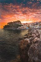 Het stadje Parga in Griekenland tijdens zonsondergang.