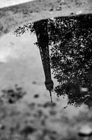 Over ‘Parijs - Reflectie van de Eiffeltoren in een plas water - Zwart-Wit’ van Eline Willekens