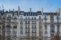 Parijse avenue met de typisch herkenbare bouw. Strakke compositie met heldere kleuren en een heerlijke blauwe lucht.