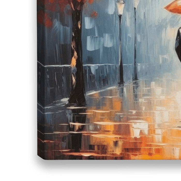 Romantische wandeling in herfstig Parijs in de stijl van een abstract kleurrijk schilderij.