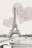De Eiffeltoren in Parijs kenmerkt het stadsbeeld met 324 meter. Het is een van de meest bezochte bezienswaardigheden ter wereld. Geniet van een romantische indruk met de typografie "Parijs, je had me bij bonjour"".