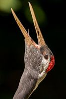 De Japanse kraanvogel roept naar zijn vrouwtje.