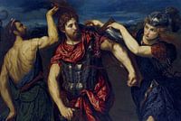 Perseus is een figuur uit de Griekse mythologie. Hij was een heros, zoon van Zeus en Danaë. Minerva en Mercurius bewapenen de god, voordat hij Medusa zal bevechten. Minerva geeft hem haar schild voor het gevecht terwijl de man al een harnas aan heeft.