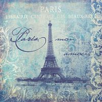 Nostalgische Parijs-illustratie met Eiffeltoren en tekstfragmenten