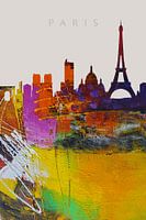 Kunstwerk met de skyline van de stad Parijs verwerkt met een modern patroon. De stijl is eigentijds met een algeheel gevoel van beweging en energie. De skyline omvat bezienswaardigheden zoals de basiliek Sacre-Coeur, Notre-Dame, Arc de Triomphe, Eiffeltoren en La Défense.