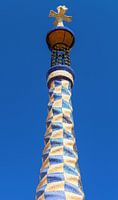 Park Guell's dak mozaïek fragment. Het werd gebouwd in opdracht van Eusebi Guell en ontworpen door Antonio Gaudi. Gebouwd in 1900-1914.