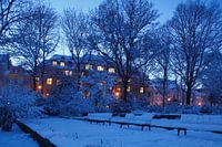 Park Wallanlagen in de winter met sneeuw bij schemering, Bremen, Duitsland, Eurpoa I Park Wallanlage van Torsten Krüger