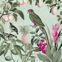 tropische parkiet en exotische vegetatie met vruchten, ideaal voor natuurliefhebbers, avonturiers, reizigers en ornithologen