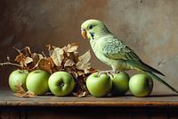 Parkiet met appels (in de stijl van Henk Helmantel) van Ton Kuijpers