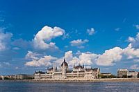 Blick über die Donau zum weltweit größten Parlament, 268 m lang, 118 m breit und mit 691 Räumen, die Kuppel ist 96 Meter hoch. Erbaut von 1885-1904 vom Architekten Imre Steindl im neugotischen Stil, Budapest, Ungarn, Europa